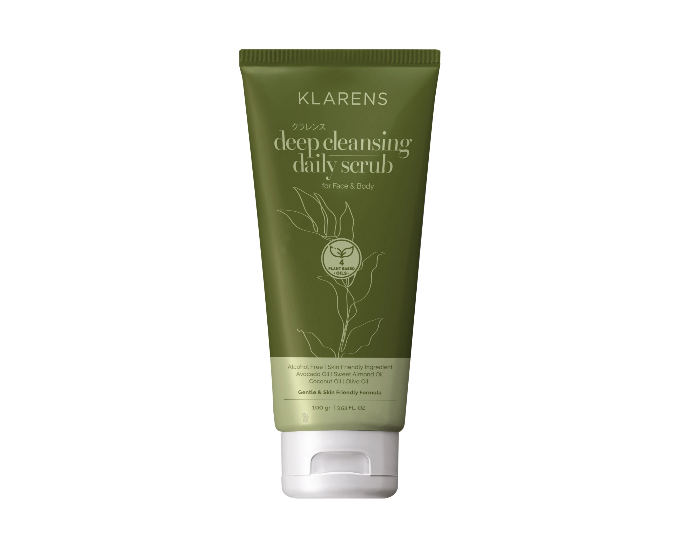Klarens Deep Cleansing Daily Scrub untuk menyegarkan kulit dengan cara mengeksfoliasi kulit dengan lembut sehingga kulit tampak lebih cerah dan halus.